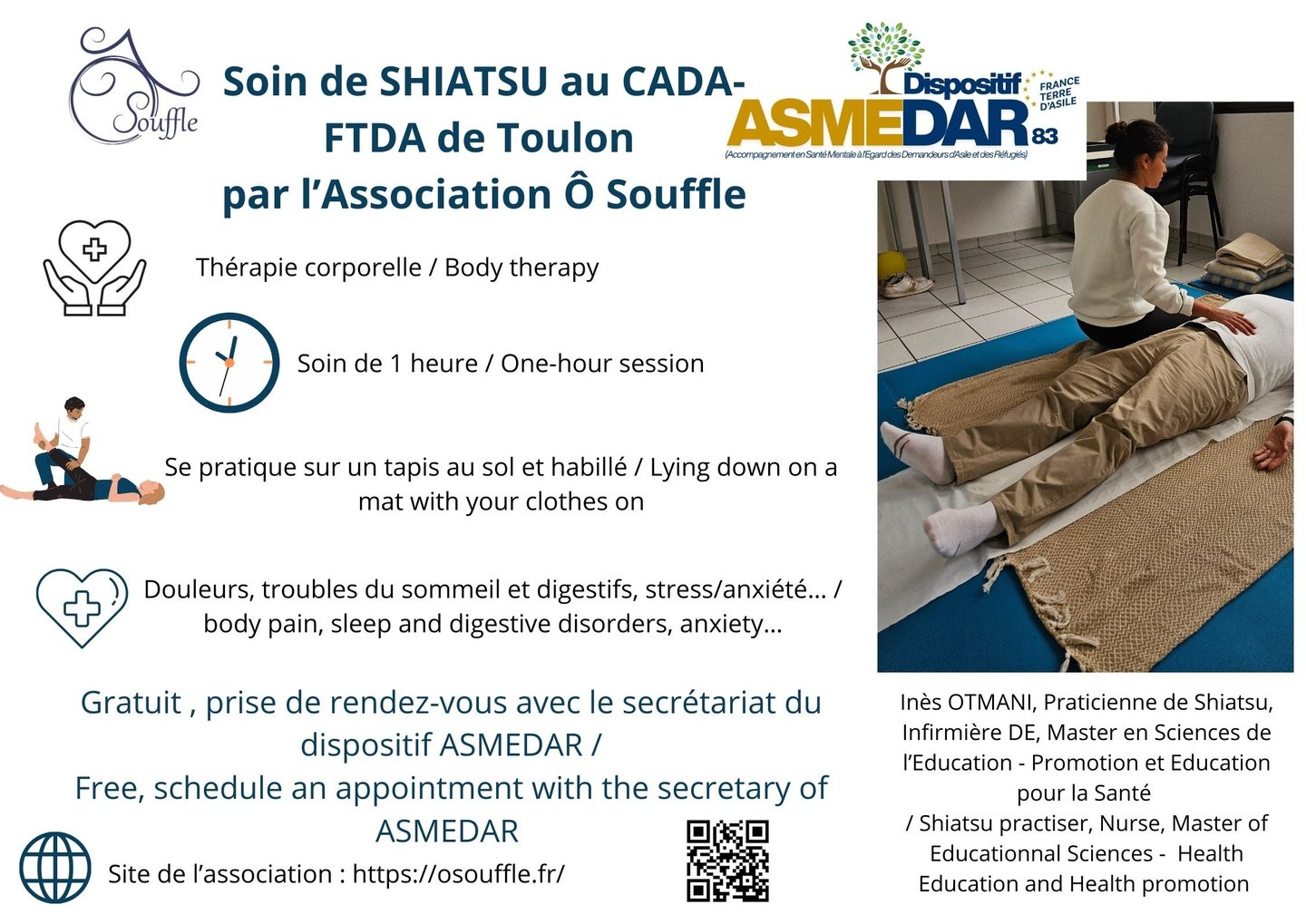 Soins de Shiatsu au Centre d'Accueil pour Demandeur d'Asile, France Terre d'Asile, Toulon